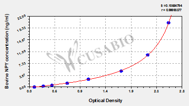 To assess the linearity of the assay, samples were spiked with high concentrations of bovine NPY in various matrices and diluted with the Sample Diluent to produce samples with values within the dynamic range of the assay. Sample Serum(n=4) 1:1 Average % 90 Range % 87-93 1:2 Average % 102 Range % 98-105 1:4 Average % 90 Range % 86-96 1:8 Average % 91 Range % 88-97 -