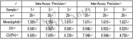 Intra-assay Precision (Precision within an assay): CV%<15%