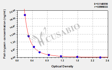 To assess the linearity of the assay, samples were spiked with high concentrations of fish trypsin in various matrices and diluted with the Sample Diluent to produce samples with values within the dynamic range of the assay. Sample Serum(n=4) 1:20 Average % 101 Range % 95-105 1:40 Average % 91 Range % 84-95 1:80 Average % 106 Range % 100-111 1:160 Average % 104 Range % 97-108 -