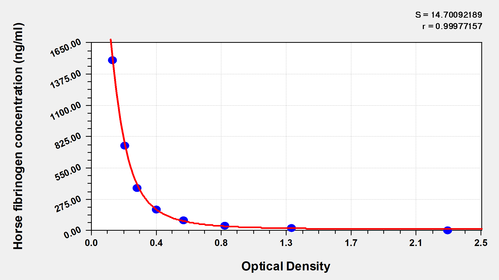 To assess the linearity of the assay, samples were spiked with high concentrations of horse fibrinogen in various matrices and diluted with the Sample Diluent to produce samples with values within the dynamic range of the assay.