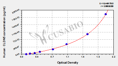 To assess the linearity of the assay, samples were spiked with high concentrations of human CLDN5 in various matrices and diluted with the Sample Diluent to produce samples with values within the dynamic range of the assay. Sample Serum(n=4) 1:1 Average % 93 Range % 88-97 1:2 Average % 97 Range % 92-102 1:4 Average % 100 Range % 94-107 1:8 Average % 92 Range % 87-99 -