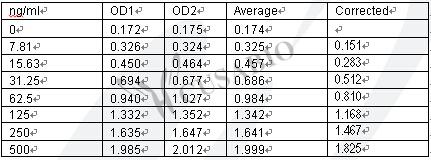 檢測(cè)范圍:7.8 ng/mL-500 ng/mL