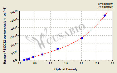To assess the linearity of the assay, samples were spiked with high concentrations of human FBXO32 in various matrices and diluted with the Sample Diluent to produce samples with values within the dynamic range of the assay. Sample Serum(n=4) 1:1 Average % 91 Range % 87-94 1:2 Average % 104 Range % 99-107 1:4 Average % 94 Range % 88-97 1:8 Average % 98 Range % 93-101 -