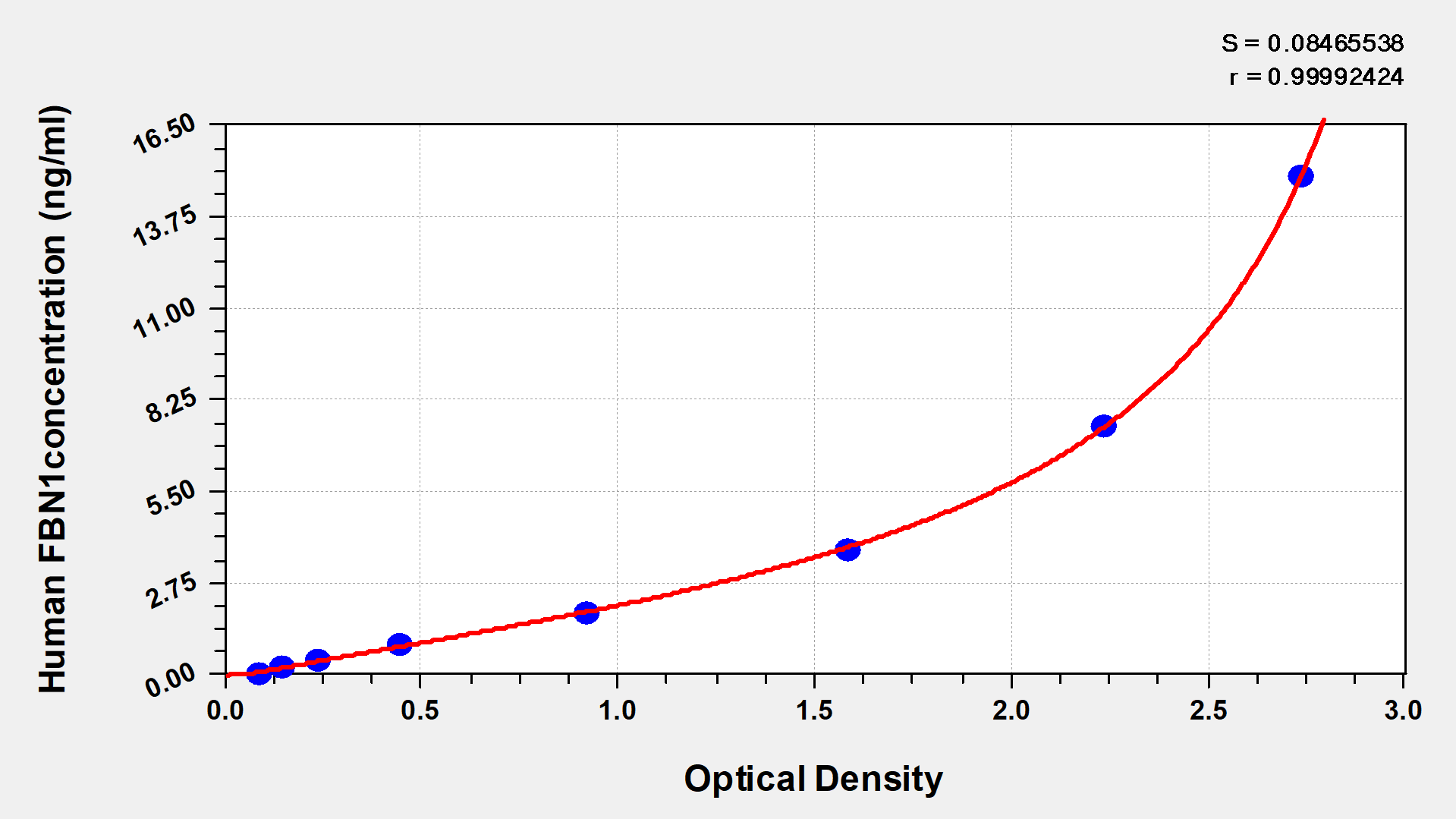 To assess the linearity of the assay, samples were spiked with high concentrations of human FBN1 in various matrices and diluted with the Sample Diluent to produce samples with values within the dynamic range of the assay.