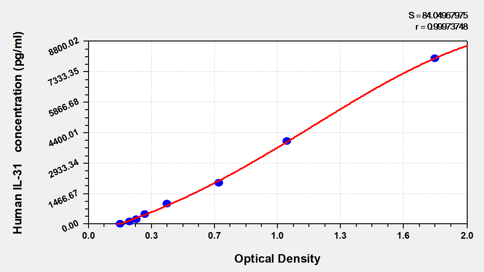 To assess the linearity of the assay, samples were spiked with high concentrations of human IL-31 in various matrices and diluted with the Sample Diluent to produce samples with values within the dynamic range of the assay.