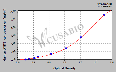 To assess the linearity of the assay, samples were spiked with high concentrations of human WNT3 in various matrices and diluted with the Sample Diluent to produce samples with values within the dynamic range of the assay. Sample Serum(n=4) 1:1 Average % 93 Range % 89-97 1:2 Average % 105 Range % 100-110 1:4 Average % 90 Range % 85-94 1:8 Average % 84 Range % 80-88 -