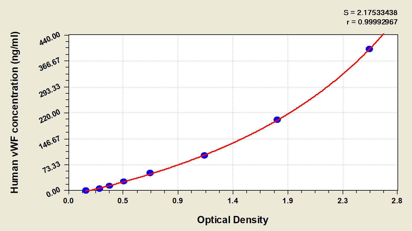 To assess the linearity of the assay, samples were spiked with high concentrations of human vWF in various matrices and diluted with the Sample Diluent to produce samples with values within the dynamic range of the assay.
