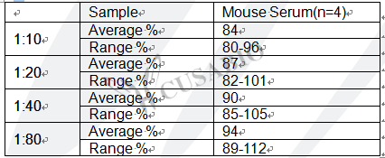 To assess the linearity of the assay, samples were spiked with high concentrations of mouse Cys-C in various matrices and diluted with the Sample Diluent to produce samples with values within the dynamic range of the assay.