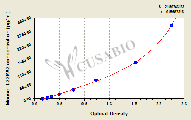 To assess the linearity of the assay, samples were spiked with high concentrations of mouse IL22RA2 in various matrices and diluted with the Sample Diluent to produce samples with values within the dynamic range of the assay. Sample Serum(n=4) 1:1 Average % 94 Range % 90-97 1:2 Average % 100 Range % 95-103 1:4 Average % 95 Range % 89-100 1:8 Average % 89 Range % 84-92 -