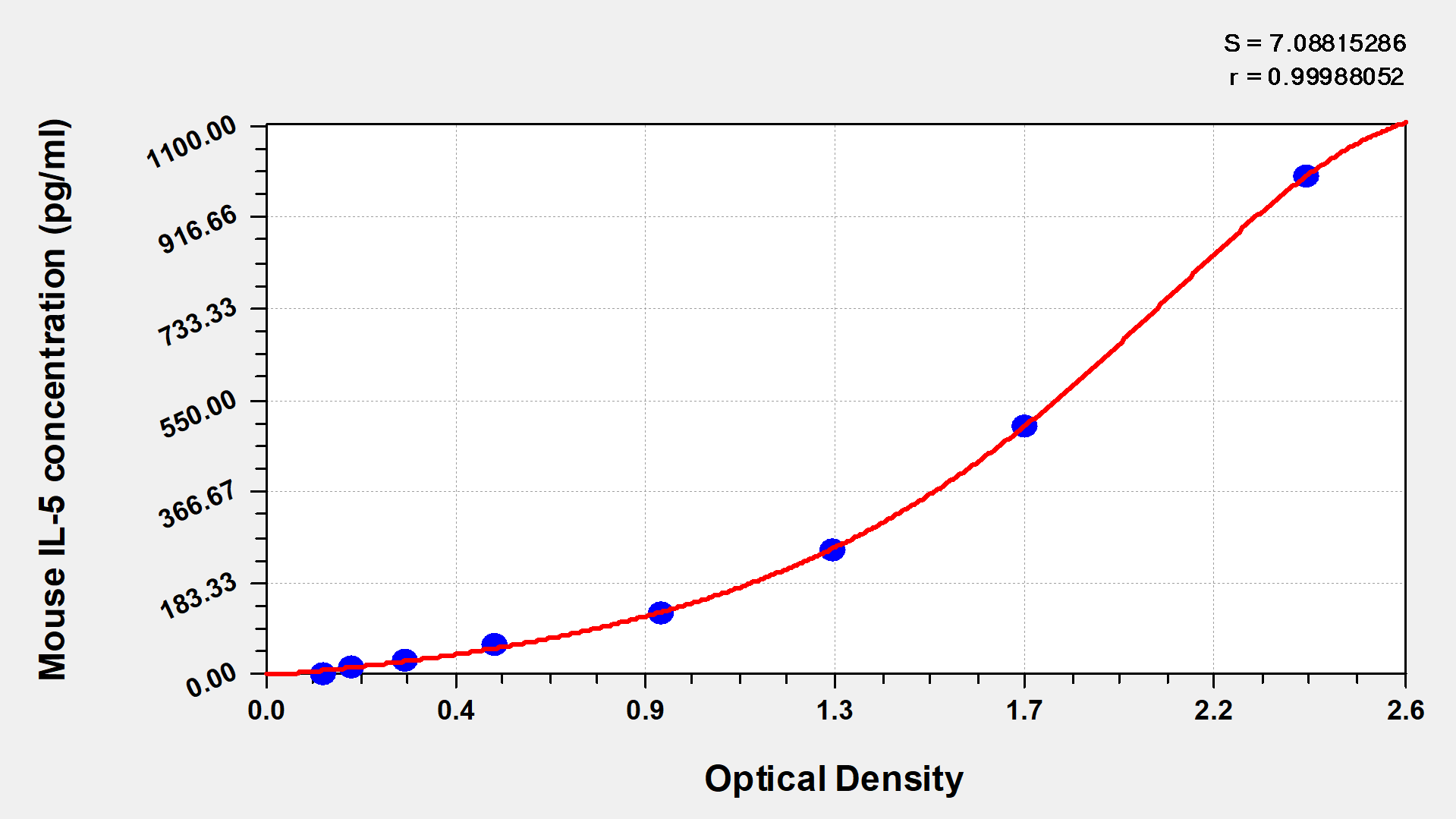 To assess the linearity of the assay, samples were spiked with high concentrations of mouse IL-5 in various matrices and diluted with the Sample Diluent to produce samples with values within the dynamic range of the assay.