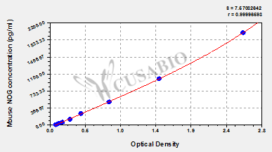 To assess the linearity of the assay, samples were spiked with high concentrations of mouse NOG in various matrices and diluted with the Sample Diluent to produce samples with values within the dynamic range of the assay. Sample Serum(n=4) 1:5 Average % 95 Range % 90-97 1:10 Average % 89 Range % 81-99 1:20 Average % 95 Range % 87-100 1:40 Average % 93 Range % 85-104 -