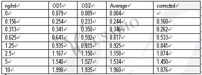 檢測(cè)范圍:0.156 ng/ml-10 ng/ml.