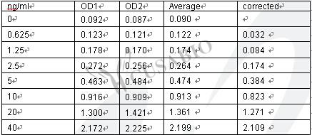 檢測(cè)范圍:0.625 ng/mL-40 ng/mL