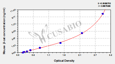 To assess the linearity of the assay, samples were spiked with high concentrations of mouse β-cat in various matrices and diluted with the Sample Diluent to produce samples with values within the dynamic range of the assay. Sample Serum(n=4) 1:1 Average % 92 Range % 87-96 1:2 Average % 99 Range % 95-103 1:4 Average % 101 Range % 94-106 1:8 Average % 95 Range % 89-98 -