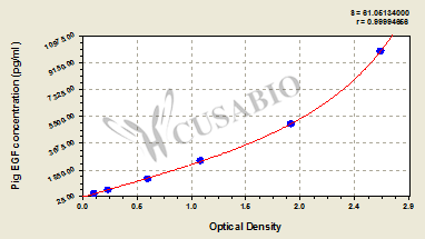 To assess the linearity of the assay, samples were spiked with high concentrations of pig EGF in various matrices and diluted with the Sample Diluent to produce samples with values within the dynamic range of the assay. Sample Serum(n=4) 1:1 Average % 100 Range % 97-105 1:2 Average % 93 Range % 90-96 1:4 Average % 102 Range % 98-106 1:8 Average % 87 Range % 83-90 -