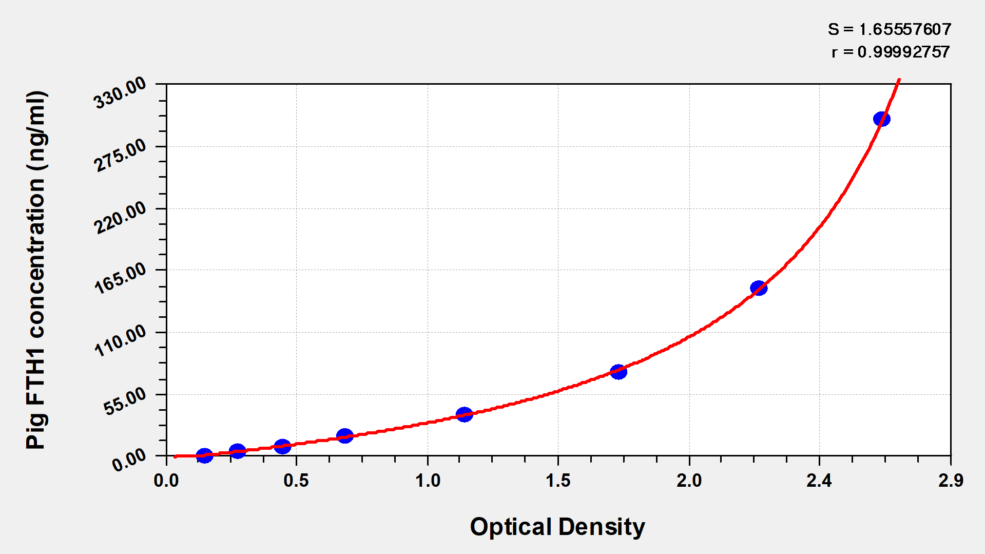 To assess the linearity of the assay, samples were spiked with high concentrations of pig FTH1 in various matrices and diluted with the Sample Diluent to produce samples with values within the dynamic range of the assay.