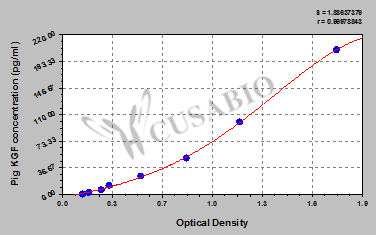 To assess the linearity of the assay, samples were spiked with high concentrations of pig KGF in various matrices and diluted with the Sample Diluent to produce samples with values within the dynamic range of the assay. Sample Serum(n=4) 1:1 Average % 97 Range % 92-101 1:2 Average % 88 Range % 84-92 1:4 Average % 90 Range % 85-98 1:8 Average % 106 Range % 101-114 -