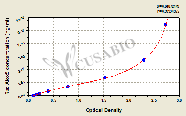 To assess the linearity of the assay, samples were spiked with high concentrations of rat Alox5 in various matrices and diluted with the Sample Diluent to produce samples with values within the dynamic range of the assay. Sample Serum(n=4) 1:1 Average % 96 Range % 92-100 1:2 Average % 102 Range % 95-106 1:4 Average % 90 Range % 83-94 1:8 Average % 93 Range % 88-97 -