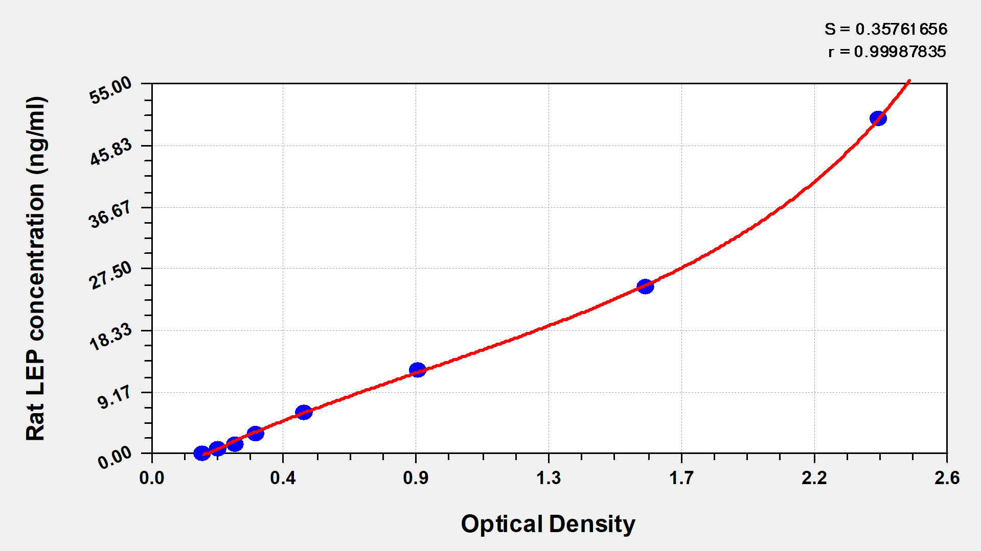 To assess the linearity of the assay, samples were spiked with high concentrations of rat LEP in various matrices and diluted with the Sample Diluent to produce samples with values within the dynamic range of the assay.