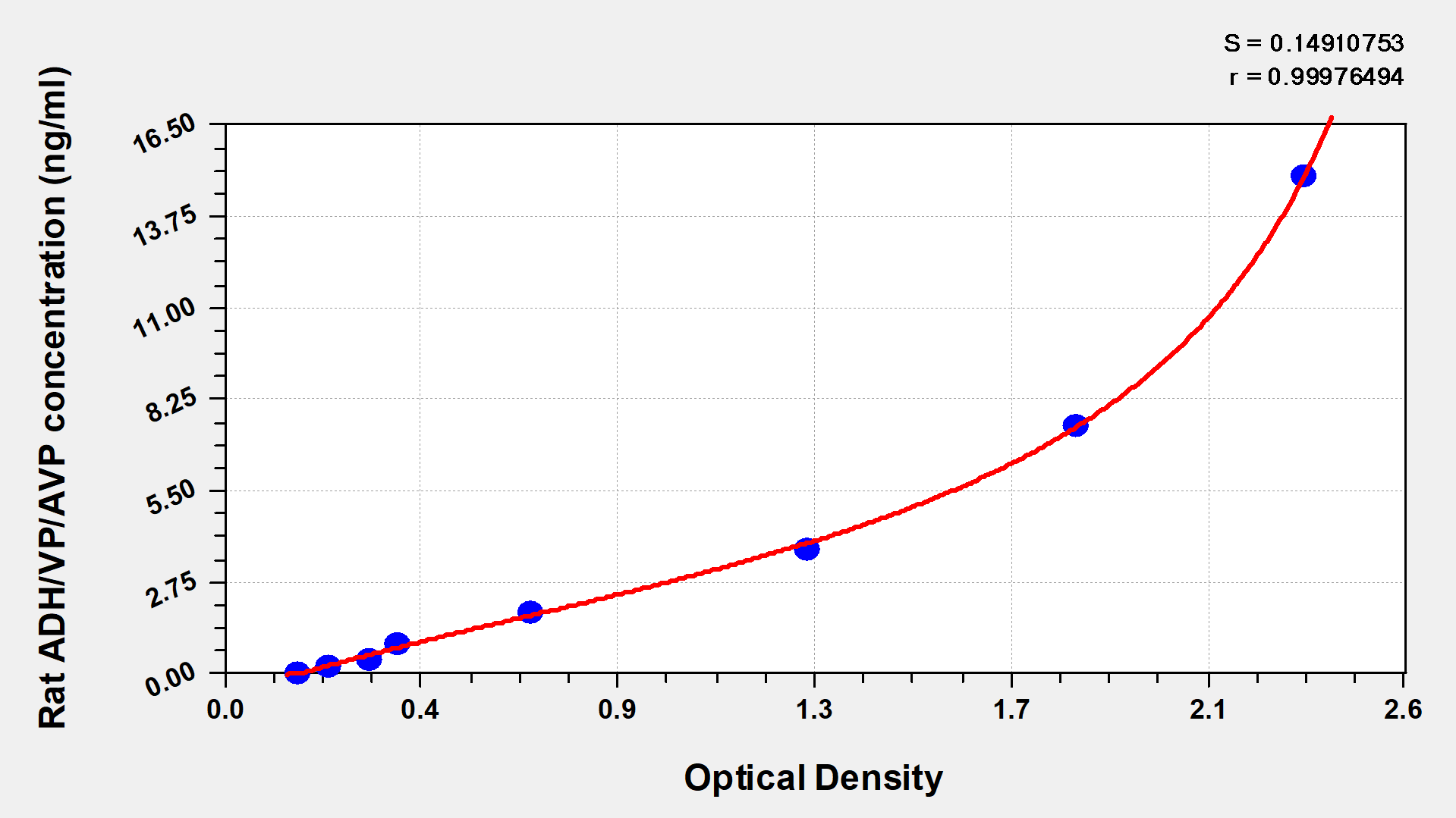 To assess the linearity of the assay, samples were spiked with high concentrations of rat ADH/VP/AVP in various matrices and diluted with the Sample Diluent to produce samples with values within the dynamic range of the assay.