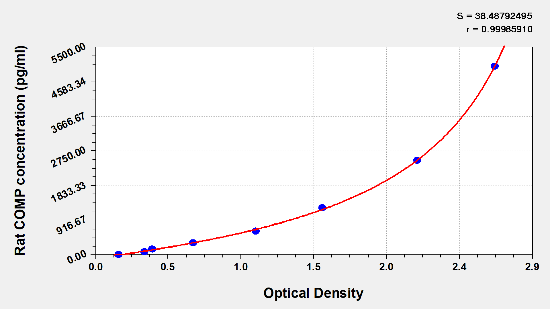 To assess the linearity of the assay, samples were spiked with high concentrations of rat COMP in various matrices and diluted with the Sample Diluent to produce samples with values within the dynamic range of the assay. |