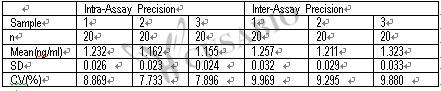 Intra-assay Precision (Precision within an assay): CV%<8%