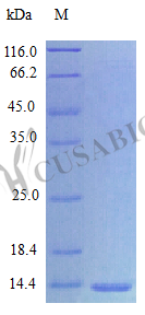 The Recombinant Human Interleukin-15/IL15 was generated by the expression of a DNA sequence corresponding to 49-162aa of human IL15 in E.coli. The full-length of mature protein reached up to 97% in purity measured by SDS-PAGE and HPLC analyses. It was also verified to be fully biologically active through its effect on a cell proliferation assay using murine CTLL-2 cells (ED50<0.5 ng/ml, specific activity >2.0x106 IU/mg). The endotoxin of this IL10 is less than 1.0 EU/μg as determined by the LAL method. Proteins in-stock are offered now. The IL15 proteins are tag-free, but CUSABIO offers custom service for you to meet the need of specific tag(s). This recombinant IL15 protein may be used to produce anti-IL15 antibodies or in the immunology studies.