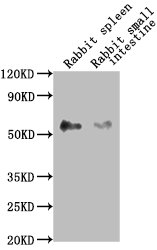 Positive WB detected in: Rabbit spleen tissue, Rabbit small intestine tissue