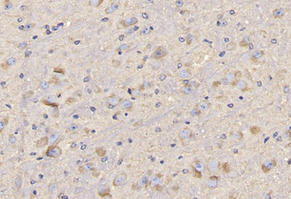 Immunohistochemical analysis of paraffin-embedded Mouse-brain tissue. 1,CD4 Monoclonal Antibody was diluted at 1:200(4°C,overnight). 2, Sodium citrate pH 6.0 was used for antibody retrieval(>98°C,20min). 3,Secondary antibody was diluted at 1:200(room tempeRature, 30min). Negative control was used by secondary antibody only.