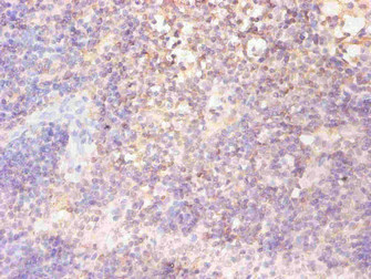 Immunohistochemical of paraffin-embedded human lymph node tissue using CSB-MA114091A0m at dilution of 1:200