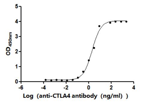 Measured by its binding ability in a functional ELISA. Immobilized Peptostreptococcus magnus protein L at 2 μg/ml can bind anti-CTLA4 recombinant antibody(CSB-RA006163MA2HU). The EC50 is 1.764-2.413 ng/mL. Biological Activity Assay