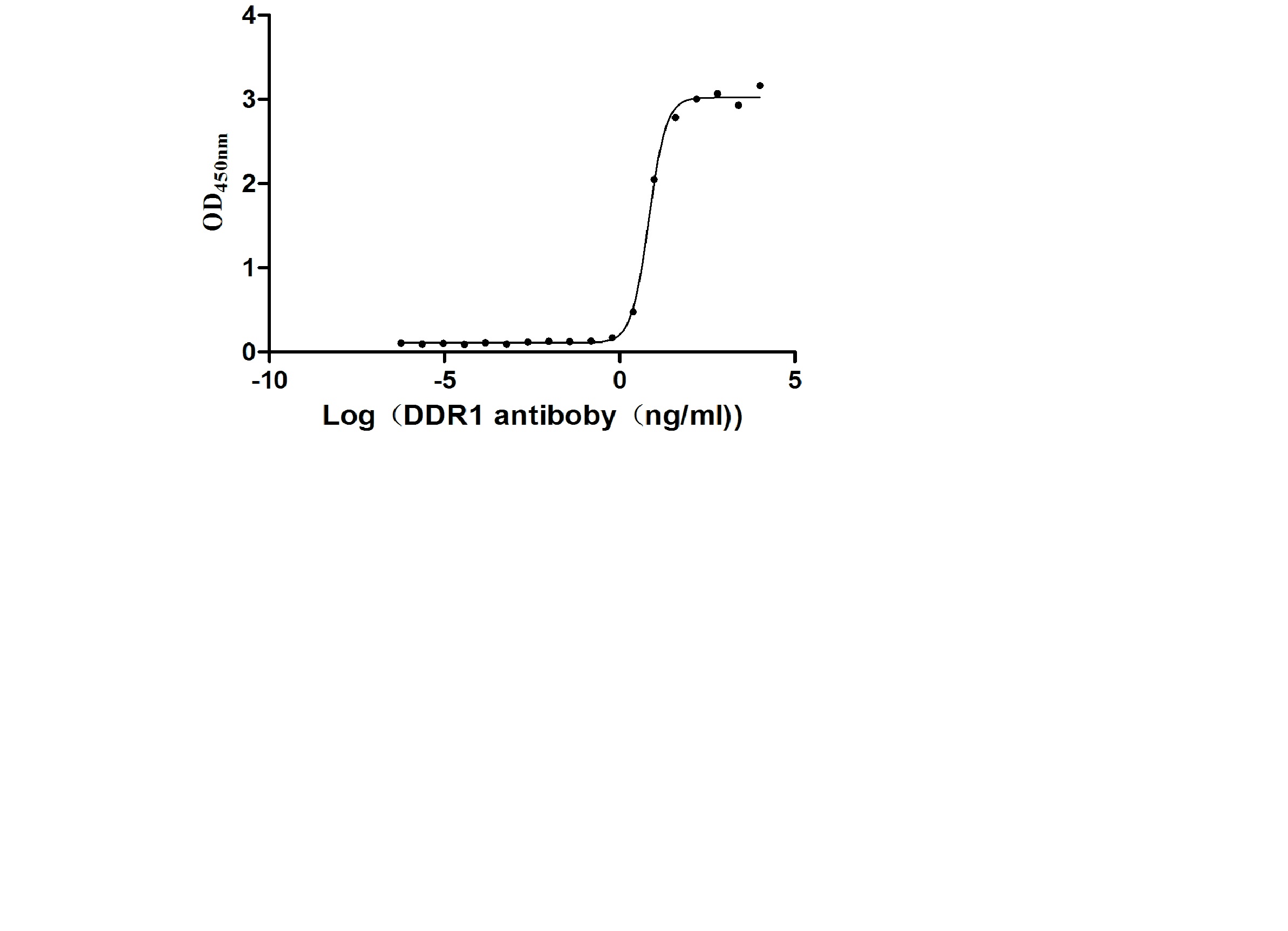 Measured by its binding ability in a functional ELISA. Immobilized Human DDR1 at 2 μg/ml can bind Anti-DDR1 recombinant antibody (CSB-RA006595MA1HU), the EC50 is 2.824-3.810 ng/mL. Biological Activity Assay