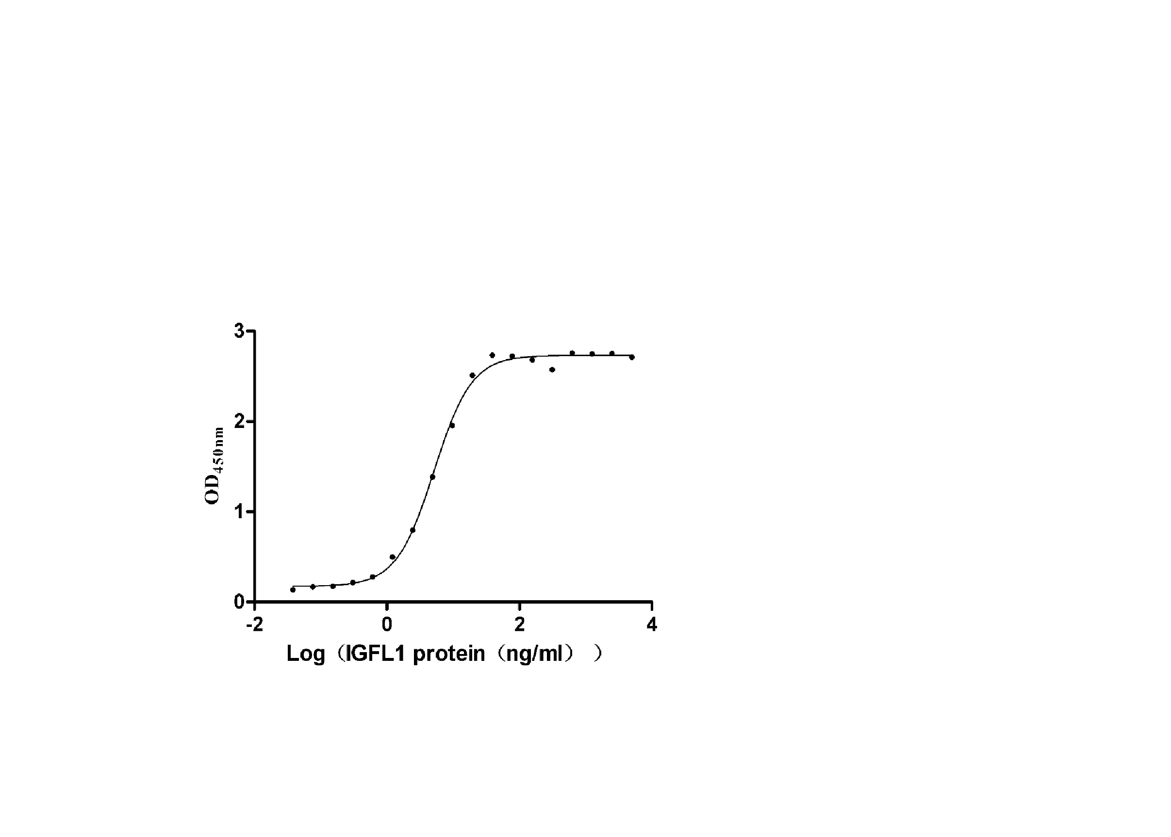 Measured by its binding ability in a functional ELISA. Immobilized Human IGFLR1 (CSB-MP862025HU) at 2 μg/ml can bind Human IGFL1, the EC50 is 32.33-47.52 ng/mL. Biological Activity Assay