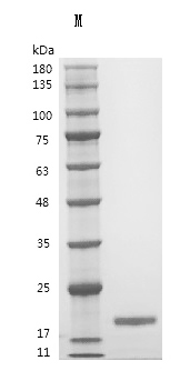復(fù)溶:We recommend that this vial be briefly centrifuged prior to opening to bring the contents to the bottom. Please reconstitute protein in deionized sterile water to a concentration of 0.1-1.0 mg/mL.We recommend to add 5-50% of glycerol (final concentration) and aliquot for long-term storage at -20℃/-80℃. Our default final concentration of glycerol is 50%. Customers could use it as reference.