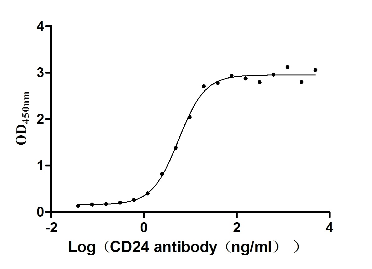 Measured by its binding ability in a functional ELISA. Immobilized human CD24 at 2 μg/ml can bind anti-CD24 recombinant Monoclonal Antibody , the the EC50 is 5.409-8.219 ng/ml. Biological Activity Assay