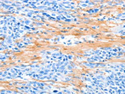 The image on the left is immunohistochemistry of paraffin-embedded Human esophagus cancer tissue using CSB-PA066208(AARS Antibody) at dilution 1/50, on the right is treated with synthetic peptide. (Original magnification: ×200)