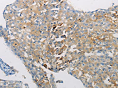 The image on the left is immunohistochemistry of paraffin-embedded Human breast cancer tissue using CSB-PA698191(AATK Antibody) at dilution 1/10, on the right is treated with synthetic peptide. (Original magnification: ×200)