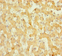Immunohistochemistry of paraffin-embedded human liver tissue using CSB-PA842687LA01HU at dilution of 1:100