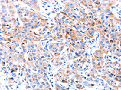 The image on the left is immunohistochemistry of paraffin-embedded Human lung cancer tissue using CSB-PA614749(ACAA2 Antibody) at dilution 1/20, on the right is treated with fusion protein. (Original magnification: ×200)
