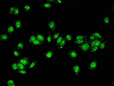 Immunofluorescent analysis of HepG2 cells using CSB-PA754597LA01HU at dilution of 1:100 and Alexa Fluor 488-congugated AffiniPure Goat Anti-Rabbit IgG(H+L)