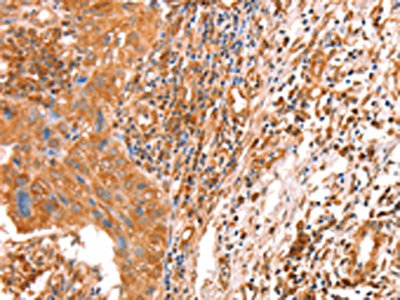 The image on the left is immunohistochemistry of paraffin-embedded Human cervical cancer tissue using CSB-PA948378(ACAD9 Antibody) at dilution 1/10, on the right is treated with fusion protein. (Original magnification: ×200)