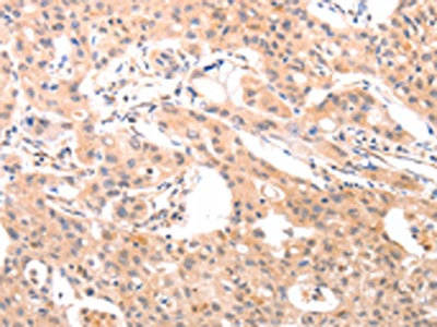 The image on the left is immunohistochemistry of paraffin-embedded Human lung cancer tissue using CSB-PA595124(ACO1 Antibody) at dilution 1/50, on the right is treated with synthetic peptide. (Original magnification: ×200)