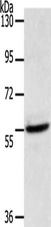 Gel: 8%SDS-PAGE, Lysate: 40 μg, Lane: MCF7 cells, Primary antibody: CSB-PA035040(ACOT2 Antibody) at dilution 1/150, Secondary antibody: Goat anti rabbit IgG at 1/8000 dilution, Exposure time: 30 minutes