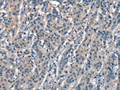 The image on the left is immunohistochemistry of paraffin-embedded Human gastric cancer tissue using CSB-PA829218(ACPT Antibody) at dilution 1/30, on the right is treated with synthetic peptide. (Original magnification: ×200)