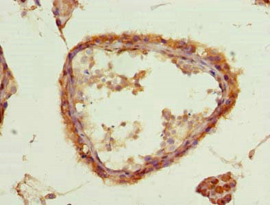 Immunohistochemistry of paraffin-embedded human testis tissue using CSB-PA685911LA01HU at dilution of 1:100