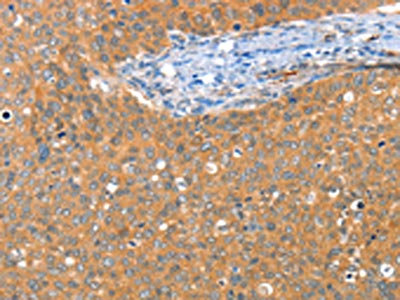 The image on the left is immunohistochemistry of paraffin-embedded Human cervical cancer tissue using CSB-PA577006(ACY3 Antibody) at dilution 1/25, on the right is treated with fusion protein. (Original magnification: ×200)