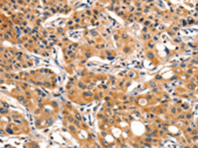 The image on the left is immunohistochemistry of paraffin-embedded Human lung cancer tissue using CSB-PA858560(AIM2 Antibody) at dilution 1/60, on the right is treated with fusion protein. (Original magnification: ×200)
