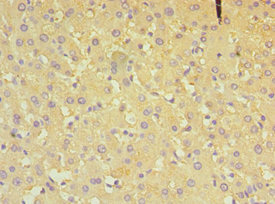 Immunohistochemistry of paraffin-embedded human liver tissue using CSB-PA001576ESR2HU at dilution of 1:100