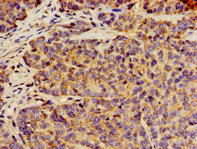 Immunohistochemistry of paraffin-embedded human ovarian cancer using CSB-PA804805LA01HU at dilution of 1:100