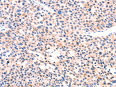 The image on the left is immunohistochemistry of paraffin-embedded Human liver cancer tissue using CSB-PA504012(APBA2 Antibody) at dilution 1/80, on the right is treated with synthetic peptide. (Original magnification: ×200)